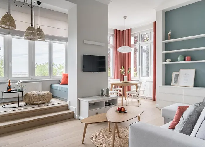 Een perfect verblijf is gegarandeerd met dit appartement van 48 m^2, gelegen in de Dolny Sopot wijk van Sopot, binnen 25 minuten te voet van Opera Leśna. Een wandeling van 10 minuten brengt u naar het centrum van Sopot.